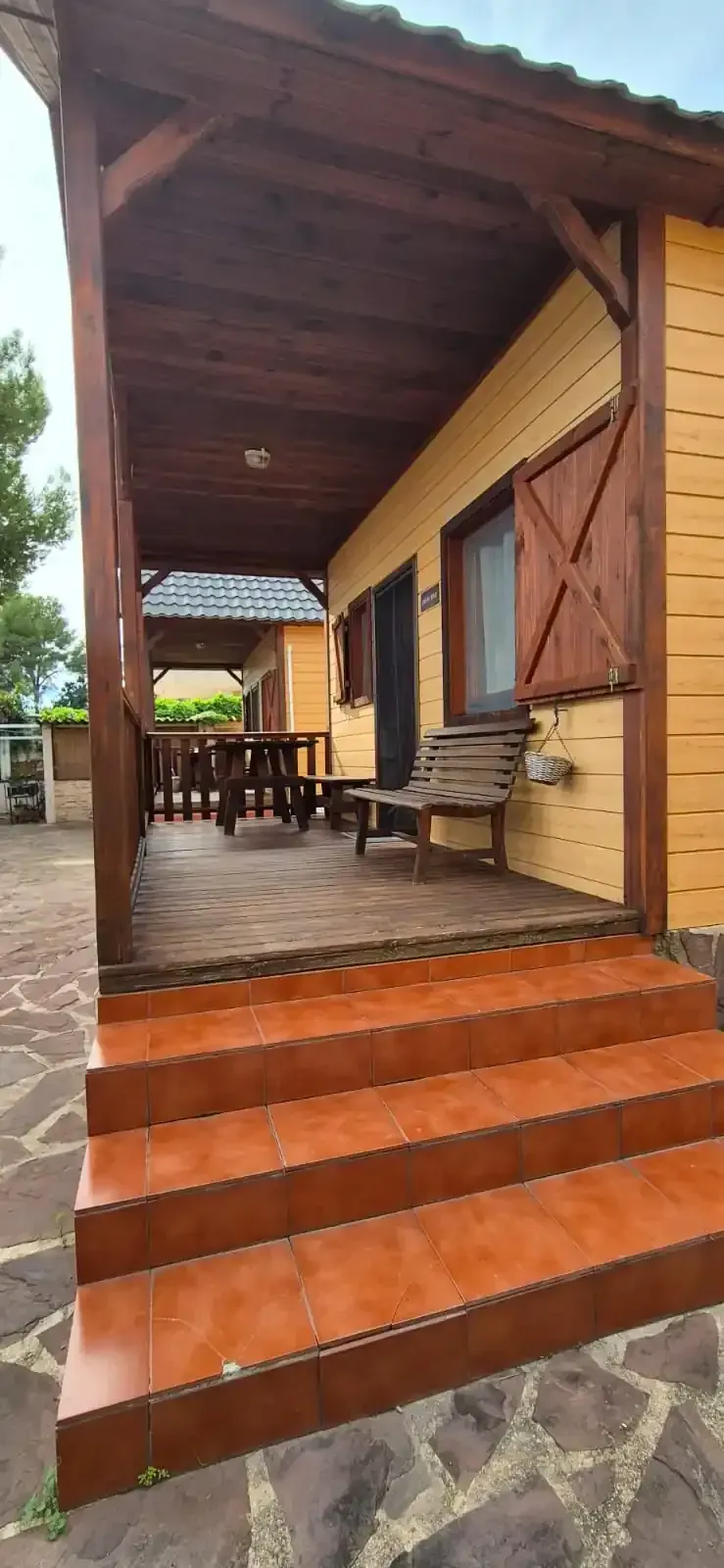ropa de cama y toallas, y ofrecemos zonas comunes con jardín, terraza y área de barbacoa. La capacidad por cabaña es de